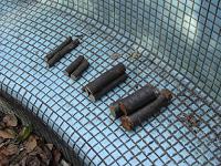 ←後に中栓となる材料です。桜やぶななどの枝です。 中栓とは竹の中に入る空気 を細くするための物です。 中栓によって音の良し悪し が決まると言っても過言 ではありません。 |
